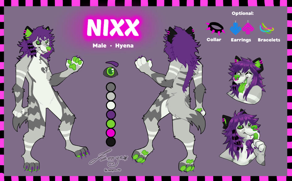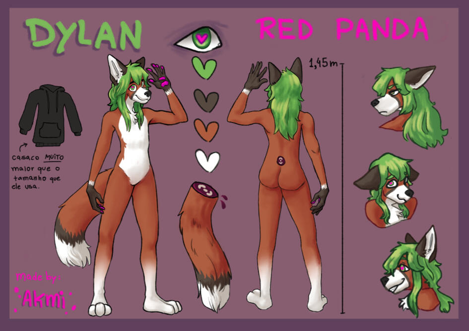 Basic Info (Name, Pronouns, Age, Height, Species etc.), front and back view, Color palette, two expressions, tail and eye view.Extra elements: from +$ 3